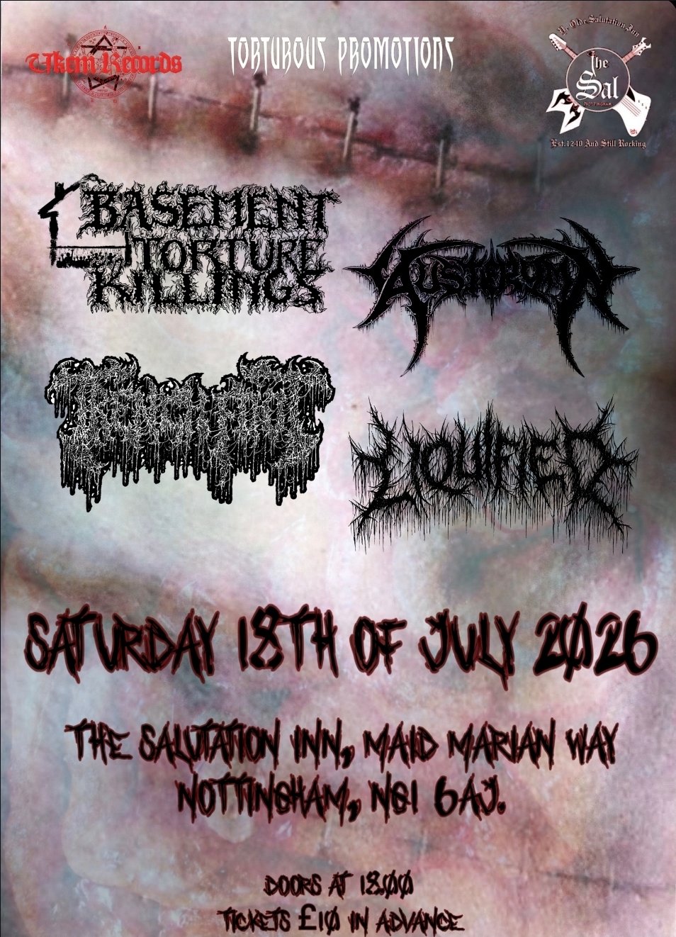 Advance ticket for Basement Torture Killings plus support at The Salutation Inn in Nottingham on Saturday the 18th of July.